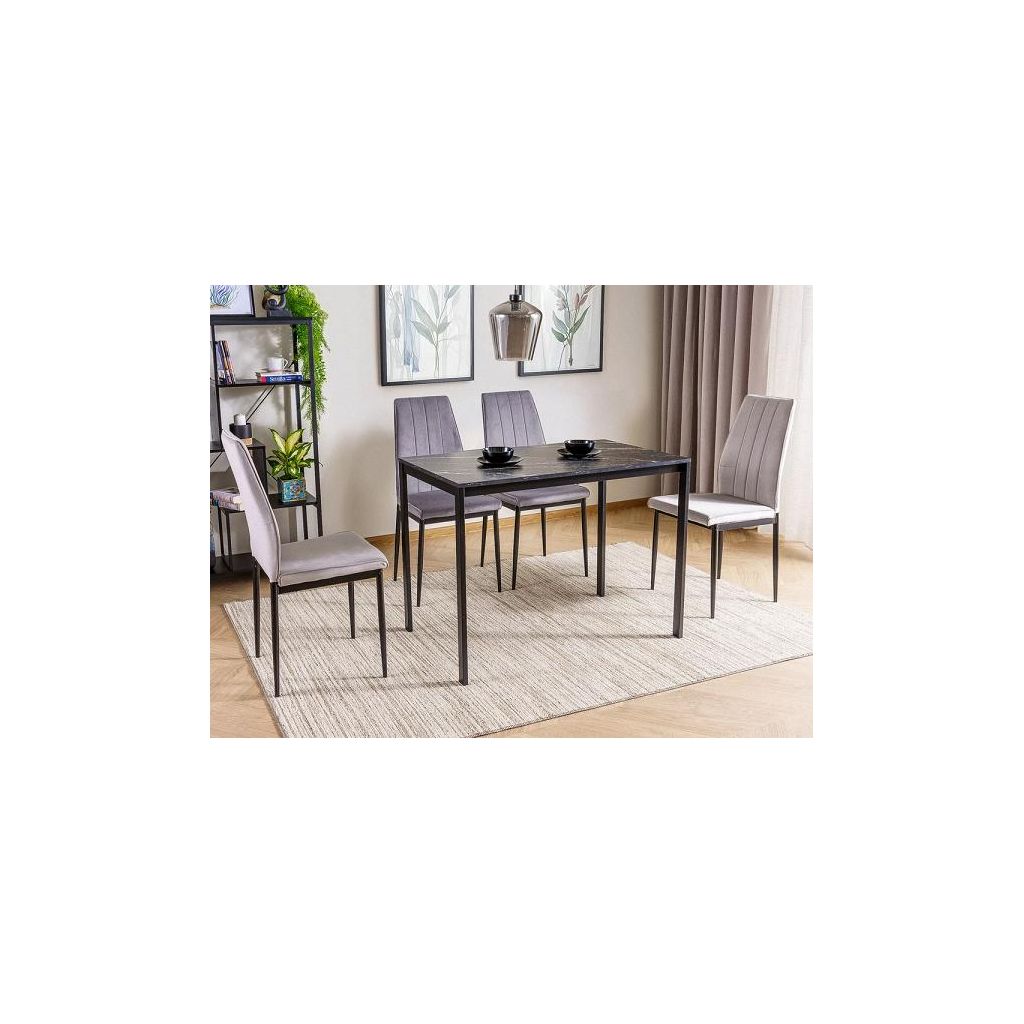 Stolička Daren Velvet s čalúnením z kvalitnej zamatovej látky Bluvel, ktorá je príjemná na dotyk a dodáva stoličke luxusný vzhľad. Pevná konštrukcia vyrobená z kovu v čiernom matnom prevedení zaručuje stabilitu a dlhú životnosť. Stolička svojím moderným, elegantným dizajnom skvelo doplní akýkoľvek interiér, či už ide o jedáleň, kuchyňu alebo kanceláriu. Čím sa stolička vyznačuje: Zamatové čalúnenie Bluvel– mäkké a príjemné na dotyk Kovový čierny matný rám – záruka pevnosti a stability Vysoká kvalita spracovania a materiálov – záruka dlhodobého používania Rozmery stoličky: Výška stoličky: 91 cm Šírka stoličky: 45 cm Výška sedu: 51 cm Hĺbka sedu: 39 cm Popis látky: Gramáž poťahovej látky: 320g/m2 Zloženie: 100% PES Test oderu Martindale: 50 000 cyklov