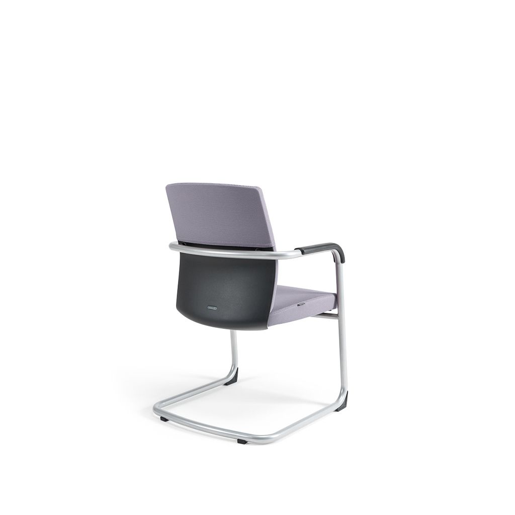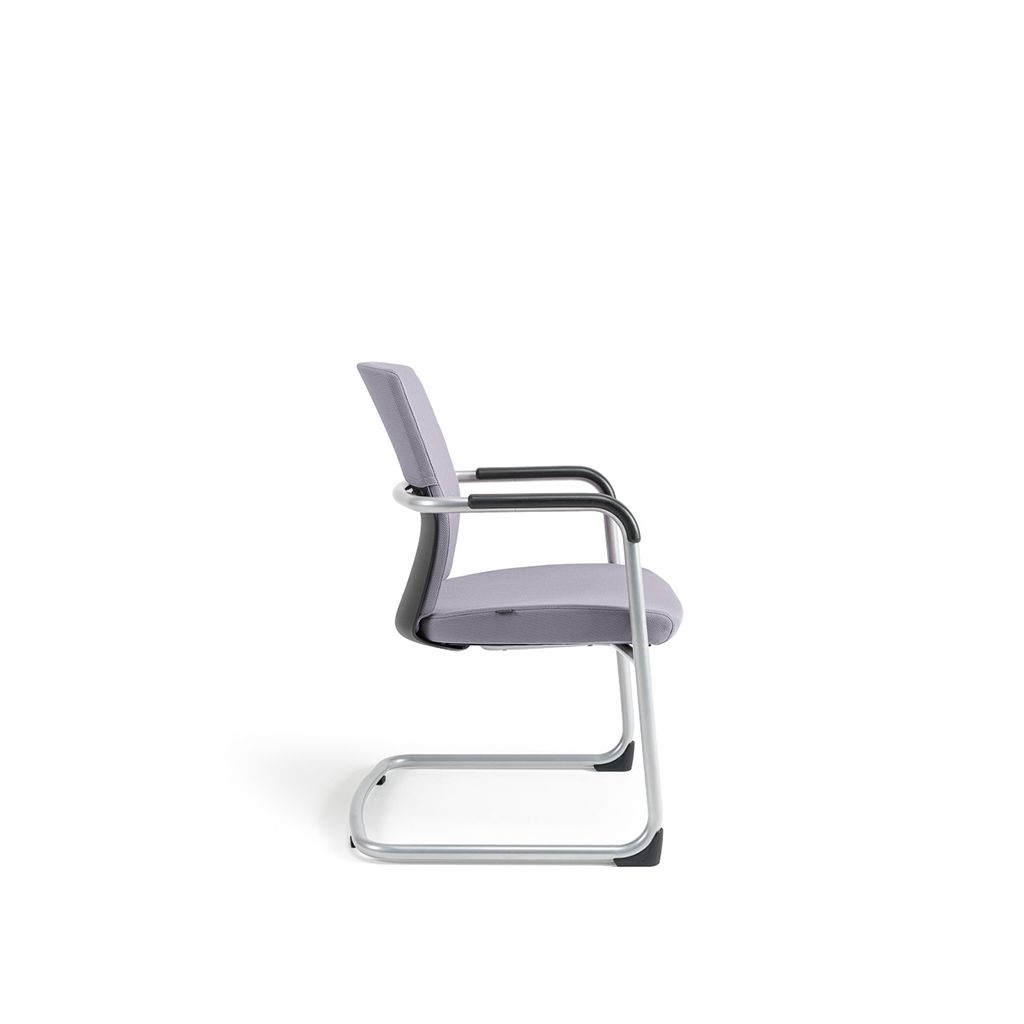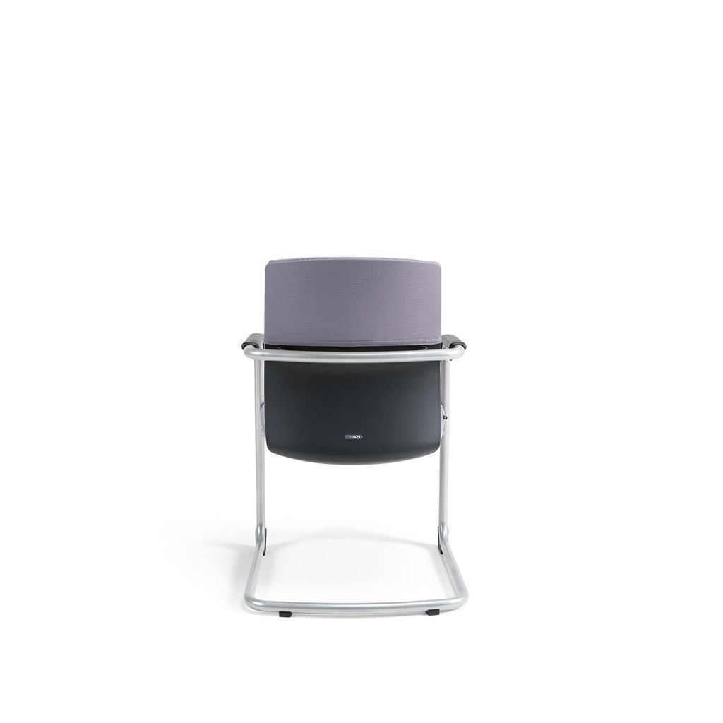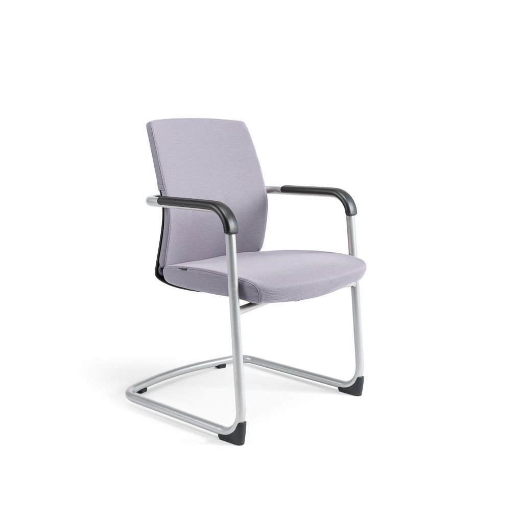 Konferenčná stolička čalúnená. Robustná kovová lyžinová konštrukcia v šedom prevedení. Výplň sedáka zo studenej peny. Integrované lakťové opierky. Plastové klzáky na ochranu konštrukcie stoličky a podlahy. Dizajnová chrbtová časť v kombinácii plastu a čalúnenia. Plasty v čiernej farbe. Nosnosť 120 kg, záruka 48 mesiacov.