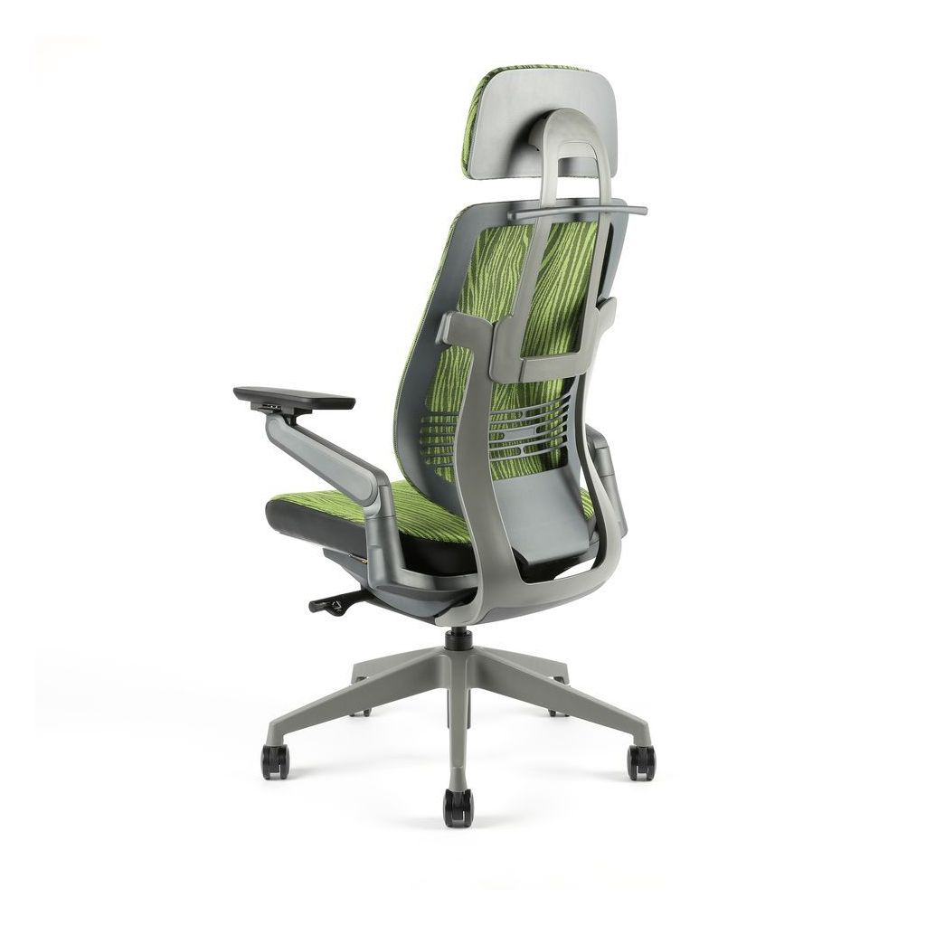 Exkluzívna kancelárska stolička s podhlavníkom, čalúnená sieťovinou MESH melír a s unikátnym mechanizmom nastaviteľných podrúčiek umožňuje ich nastavenie podľa všetkých osí, automatické nastavenie sily protiváhy, dômyselné riešenie plynulého nastavenia hĺbky sedáku. Táto stolička je „nabitá“ technickými vymoženosťami a sedenie si naozaj užijete.