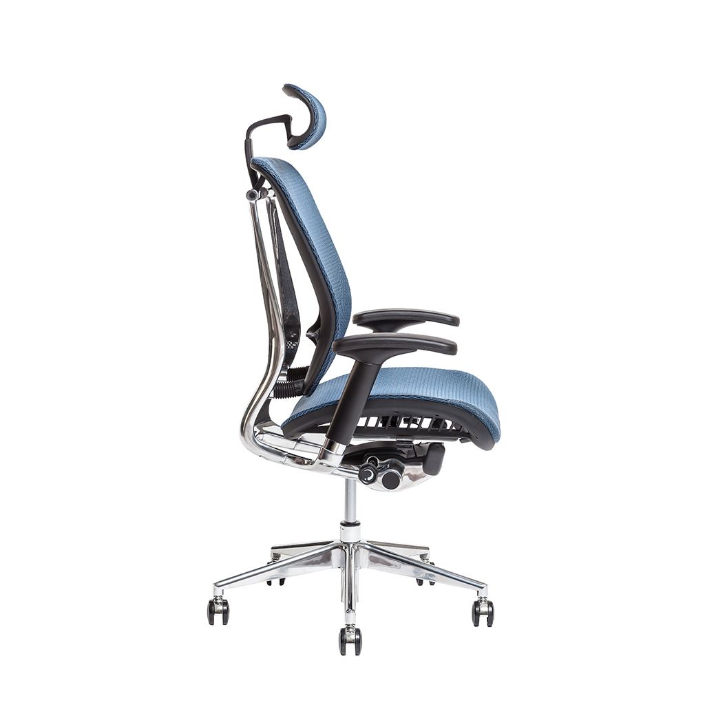 Moderná kancelárska stolička s mohutnou mechanikou, pevná kovová, konštrukcia z lešteného hliníka a kvalitnej sieťoviny na sedáku a operadle vytvárajú stoličke Lacerta futuristický design. Určite oceníte aj mnoho funkcií podporujúcich zdravé a pohodlné sedenie.