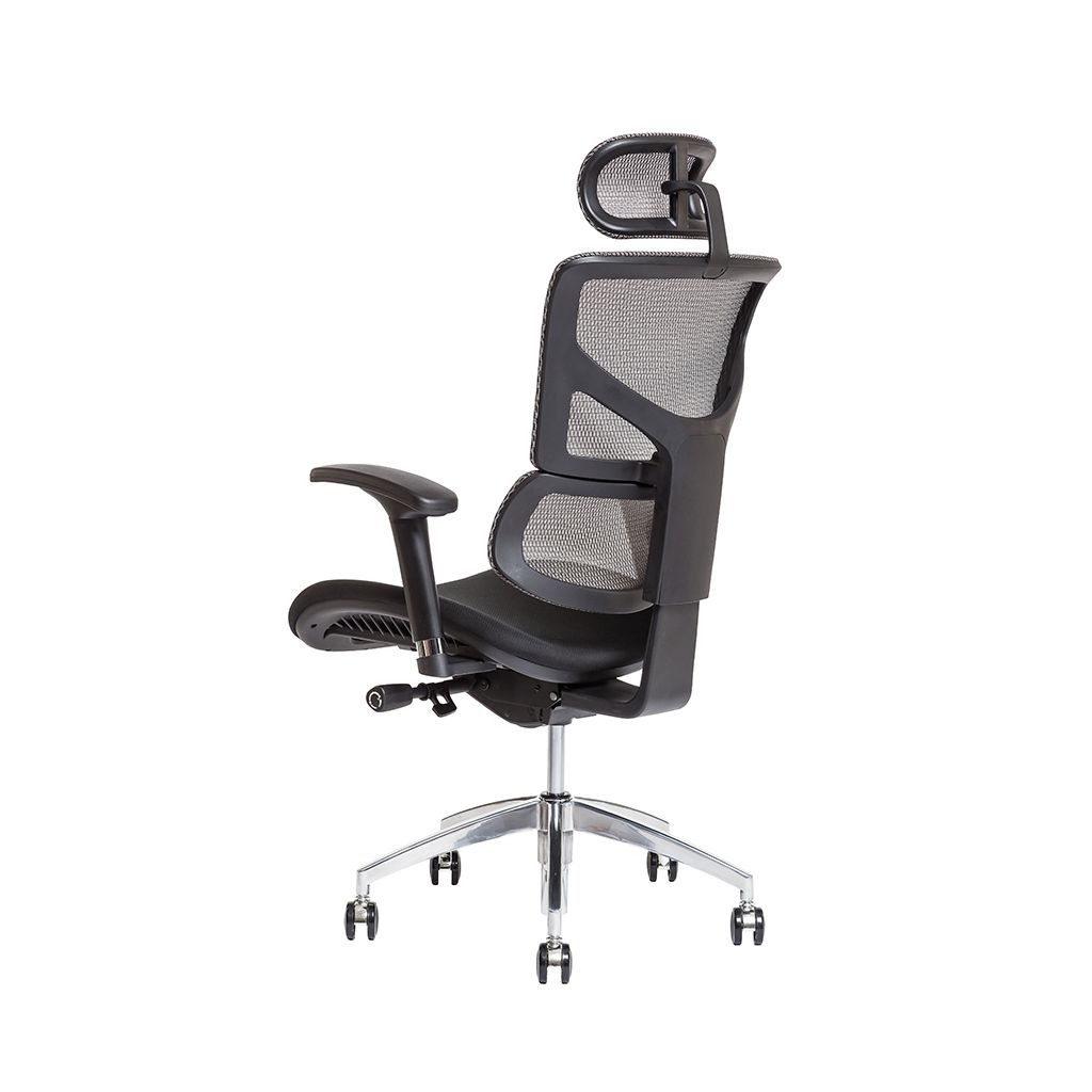 Stabilita a ergonómia je zabezpečená synchrónnym mechanizmom, ktorým meníte polohu sedáka a operáka zároveň. Sedák a operák môžete zafixovať v štyroch polohách. Výšku a hĺbku sedáka prispôsobíte svojej postave priamo na mieru a zaistíte tým správne podopreté nohy. Komfortným nastavením sily protiváhy podľa svojej hmotnosti zabezpečíte operák proti spätnému nárazu. Ergonomická aktívna opierka chrbta podporuje zdravý spôsob sedenia. Nastavením optimálnej výšky operáka v štyroch polohách zvolíte správnu polohu chrbta. Pre väčšie pohodlie si môžete prispôsobiť výšku a uhol hlavovej opierky. Stolička je čalúnená na chrbáte samonosnou sieťovinou, ktorá zaisťuje celodenné vetranie chrbta. Sedák čalúnený čiernou látkou. Podľa potreby si nastavíte výšku, hĺbku, uhol a posun podrúčiek do strán. Kolieska so zmäkčeným povrchom umožňujú použitie na tvrdej podlahe aj kobercovej krytine. Nosnosť stoličky 135 kg, 3 roky záruka.