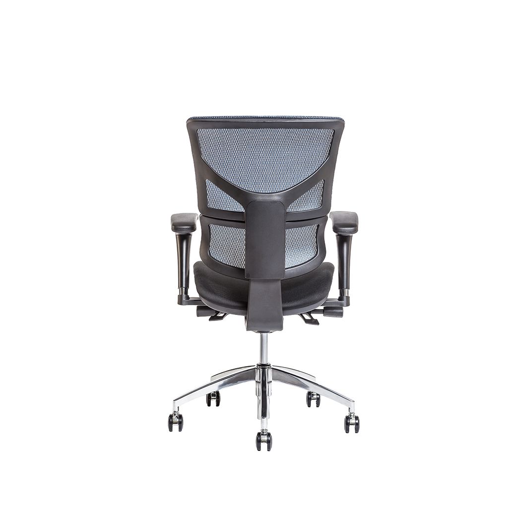 Stabilita a ergonómia je zabezpečená synchrónnym mechanizmom, ktorým meníte polohu sedáka a operáka zároveň. Sedák a operák môžete zafixovať v štyroch polohách. Výšku a hĺbku sedáka prispôsobíte svojej postave priamo na mieru a zaistíte tým správne podopreté nohy. Komfortným nastavením sily protiváhy podľa svojej hmotnosti zabezpečíte operák proti spätnému nárazu. Ergonomická aktívna opierka chrbta podporuje zdravý spôsob sedenia. Nastavením optimálnej výšky operáka v štyroch polohách zvolíte správnu polohu chrbta. Stolička je čalúnená na chrbáte samonosnou sieťovinou, ktorá zaisťuje celodenné vetranie chrbta. Sedák čalúnený čiernou látkou. Podľa potreby si nastavíte výšku, hĺbku, uhol a posun podrúčiek do strán. Kolieska so zmäkčeným povrchom umožňujú použitie na tvrdej podlahe aj kobercovej krytine. Nosnosť stoličky 135 kg, 3 roky záruka.
