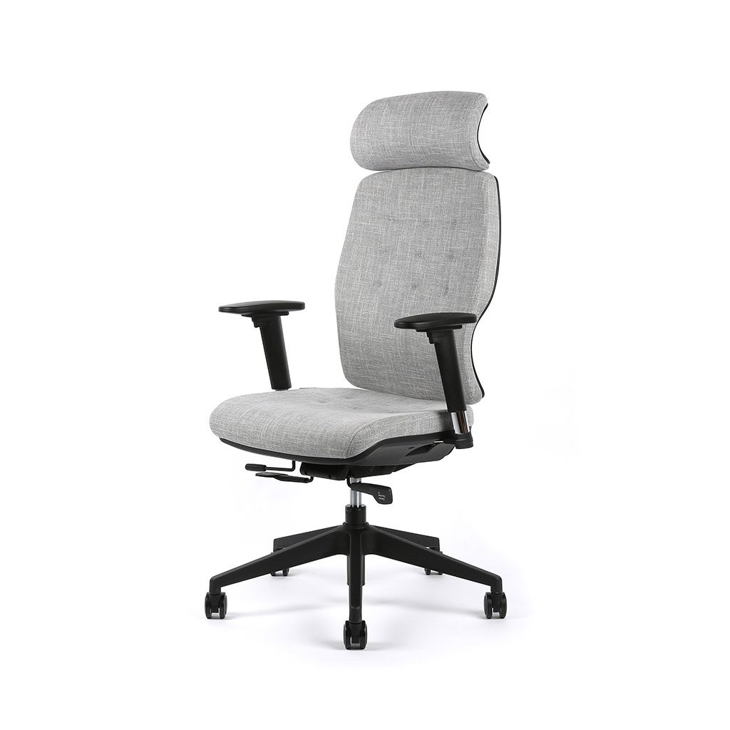 Synchrónny mechanizmus so 4 polohami blokácie zaisťuje stabilitu a ergonómiu sedenia. Automatické nastavenie sily protiváhy podľa hmotnosti užívateľa zabráni nečakanému kolísaniu. Výšku a hĺbku sedadla prispôsobíte svojej postave na mieru a zaistíte si tým správne podoprenie nôh. Nastavením optimálnej výšky operadla zvolíte správnu polohu chrbta. Studená pena vnútri sedadla a operadla je zárukou vysokej životnosti a zachovania tvaru. Väčšie pohodlie vám zaistí fixná hlavová opierka. Podľa potreby si nastavíte výšku a hĺbku podrúčok. Univerzálne kolieska s mäkčeným povrchom umožňujú použitie pre tvrdú podlahu aj koberec. Nosnosť 130 kg, záruka 3 roky.