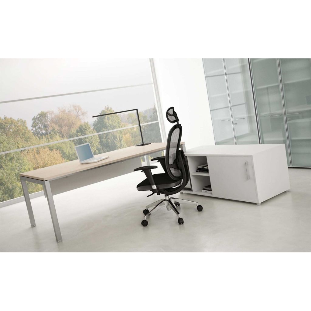 Kancelárska stolička Oklahoma PHD sieťovina na operadle a opierke hlavy, synchronný mechanizmus s nastavením sily protiváhy a niekoľkonásobnou aretáciou, bedrovou regulovateľnou opierkou, zvisle a vodorovne nastaviteľné podrúčky s mäkkou dotykovou plochou, hliníková leštená báza, kolieska s gumovou obručou pre všetky typy povrchov, nosnosť130 kg, záruka 24 mesiacov.