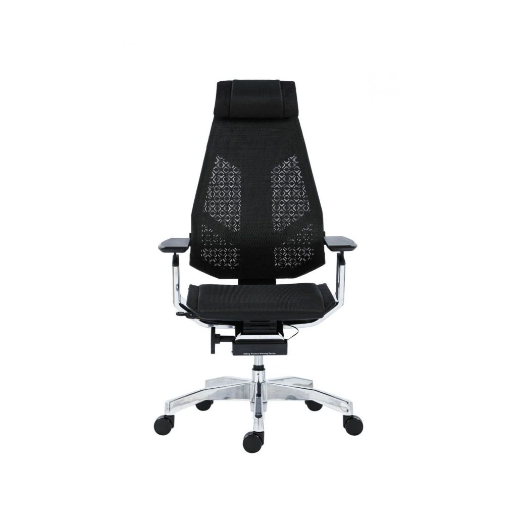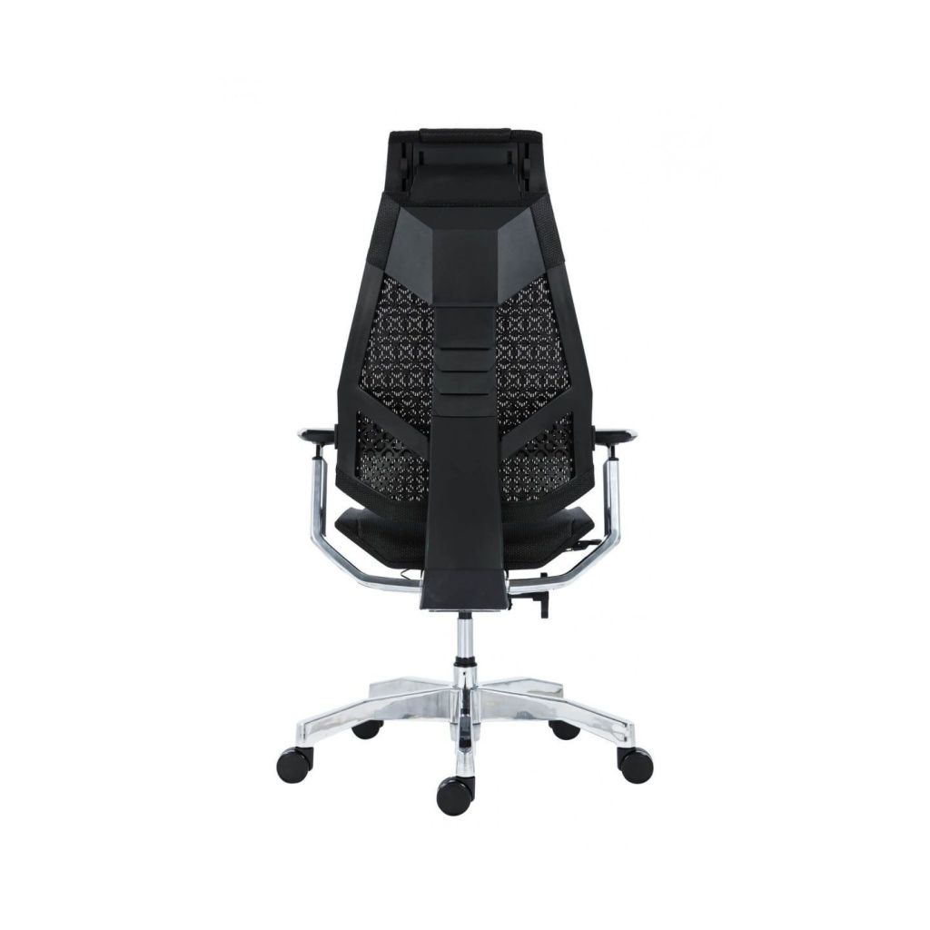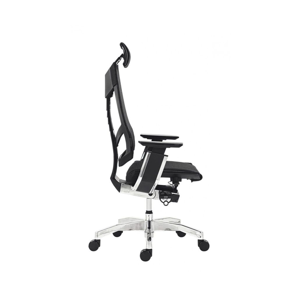 Exkluzívna kancelárska stolička Genidia s priedušným sedákom a operadlom, flexibilná konštrukcia operadla pre optimálnu distribúciu tlaku na jednotlivé partie chrbta, výškovo a uhlovo nastaviteľná opierka hlavy, synchrónny mechanizmus s nastavením sily protiváhy - ovládanie bovdenom, niekoľkonásobná aretácia, nastavenie hĺbky sedáku, výškové nastavenie operadla systémom up-down, nastavenie uhlu a výšky podrúčiek a opierky hlavy, výškovo nastaviteľná bedrová opierka, hliníková báza, kolieska O 65 mm - pre všetky typy podláh, nosnosť 130 kg, záruka 36 mesiacov.