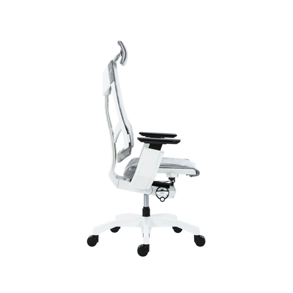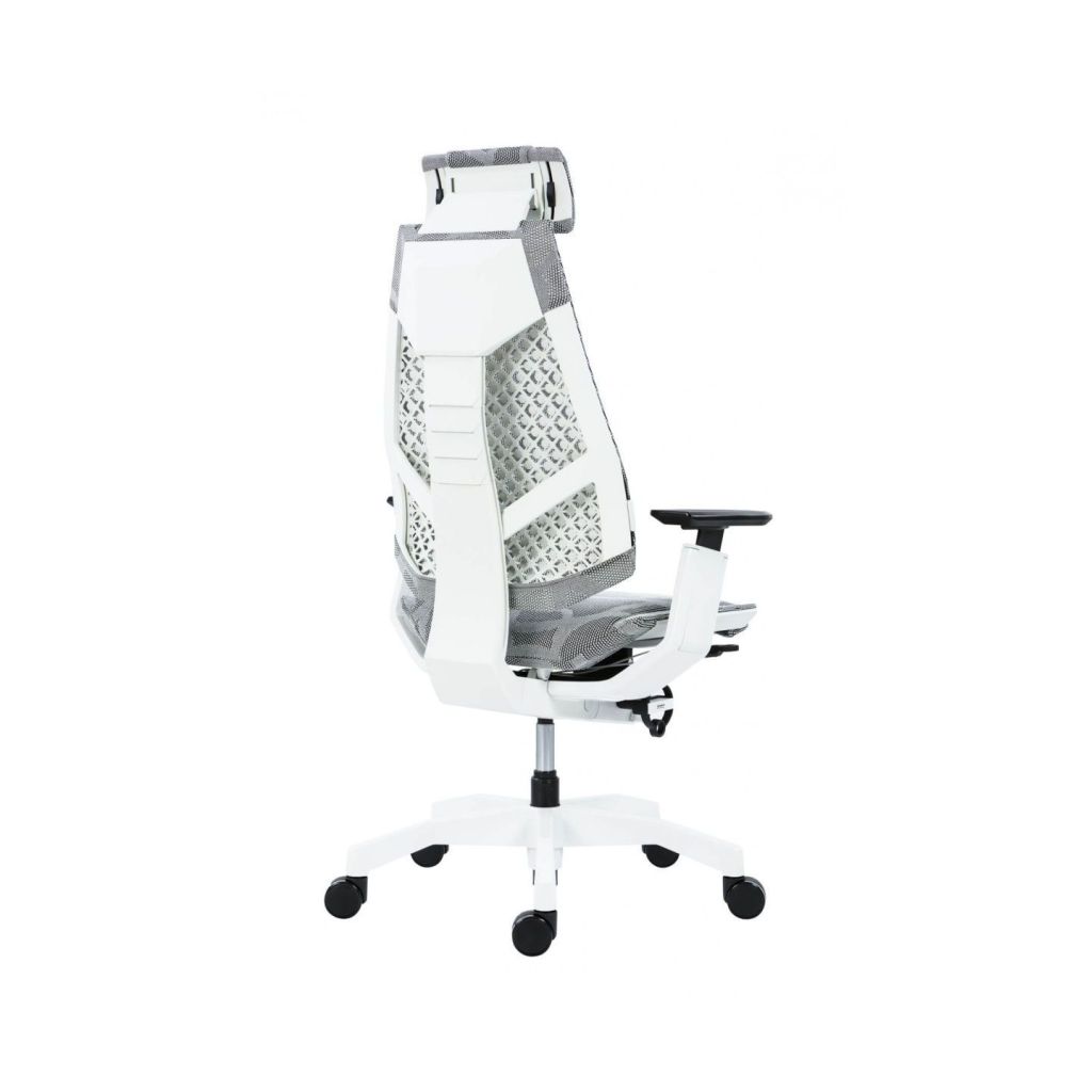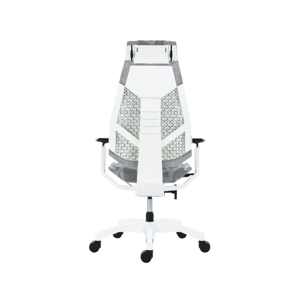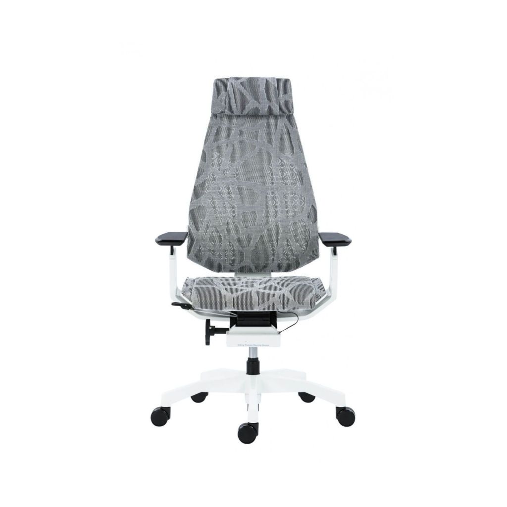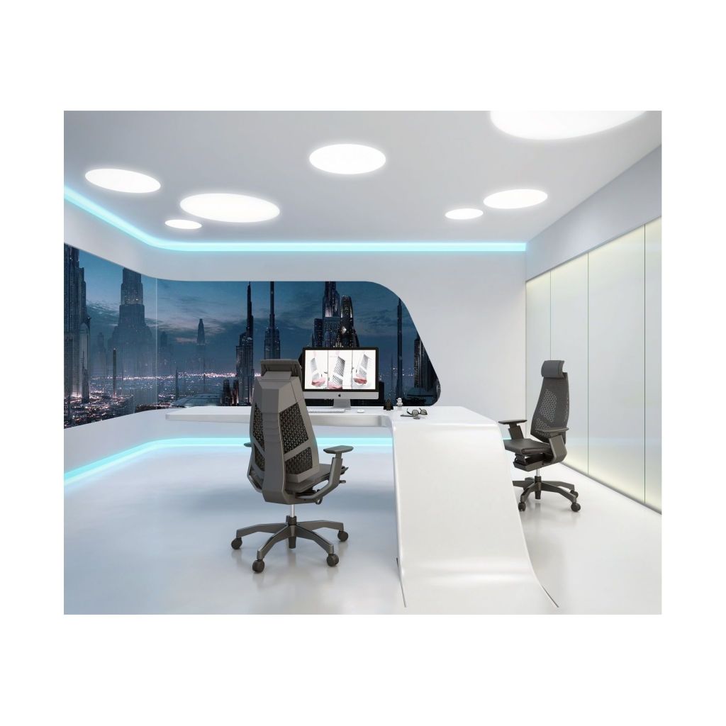 Exkluzívna kancelárska stolička Genidia s priedušným sedákom a operadlom, flexibilná konštrukcia operadla pre optimálnu distribúciu tlaku na jednotlivé partie chrbta, výškovo a uhlovo nastaviteľná opierka hlavy, synchrónny mechanizmus s nastavením sily protiváhy - ovládanie bovdenom, niekoľkonásobná aretácia, nastavenie hĺbky sedáku, výškové nastavenie operadla systémom up-down, nastavenie uhlu a výšky podrúčiek a opierky hlavy, výškovo nastaviteľná bedrová opierka, hliníková báza, kolieska O 65 mm - pre všetky typy podláh, nosnosť 130 kg, záruka 36 mesiacov.