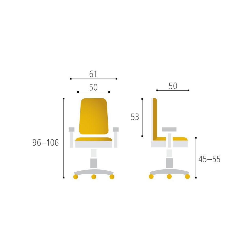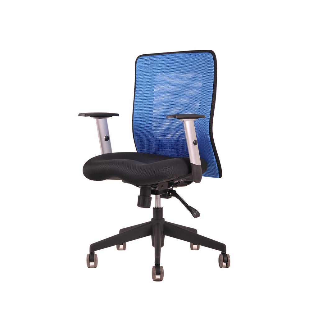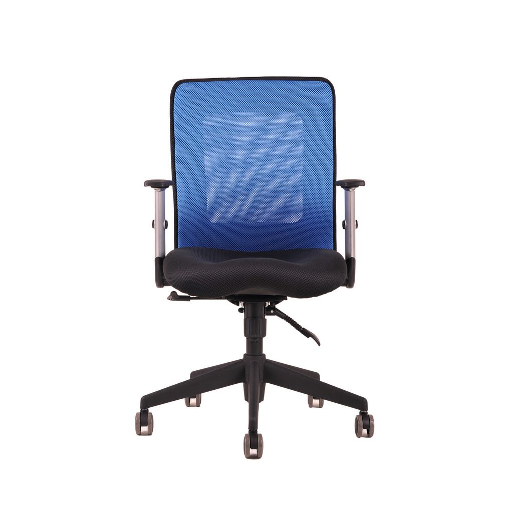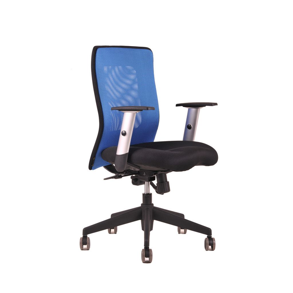 Kancelárska stolička čalúnená Calypso. Synchrónny mechanizmus so 4 polohami blokovania. Nastavenie sily protiváhy- podľa telesnej hmotnosti. Výškové nastavenie sedáka. Anatomicky tvarovaný sedák.