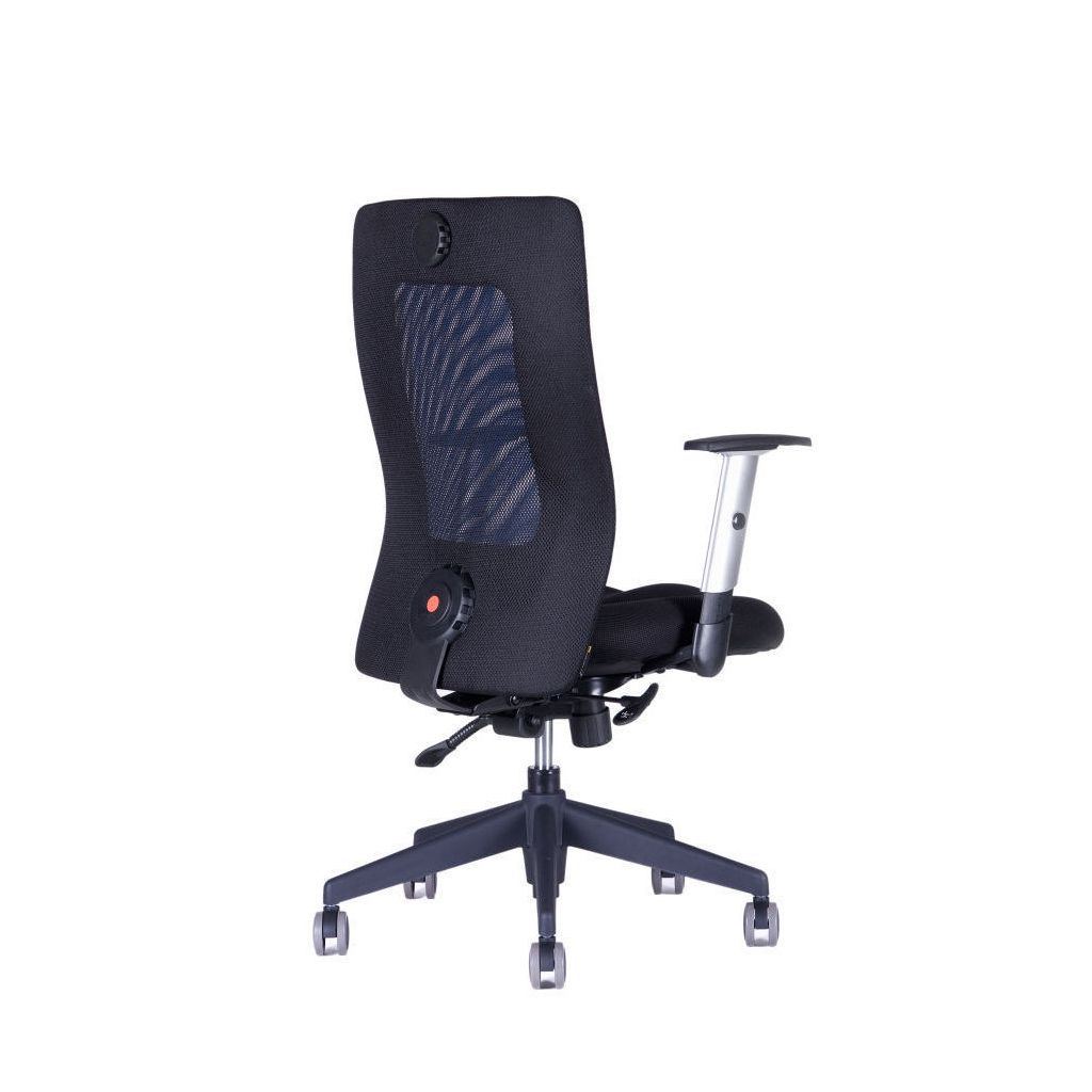 Kancelárska stolička CALYPSO GRAND BP. Synchrónny mechanizmus je možné zafixovať v ktorejkoľvek polohe. Nastavenie výšky sedáka, studená pena vo vnútri sedáka. Vysoké operadlo. Nastavenie sily protiváhy podľa telesnej hmotnosti.