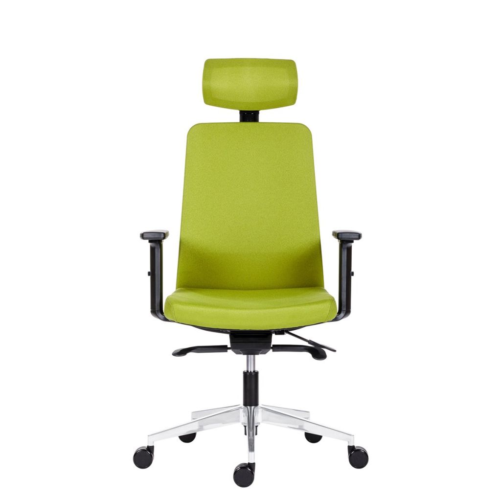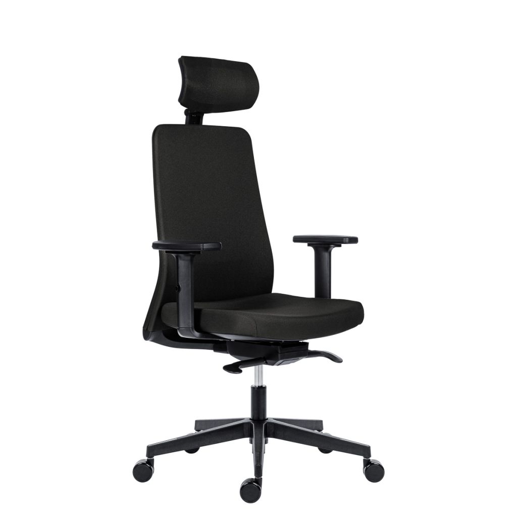 - kancelárska stolička s plne priedušným operadlom a podhlavníkom potiahnutým látkou