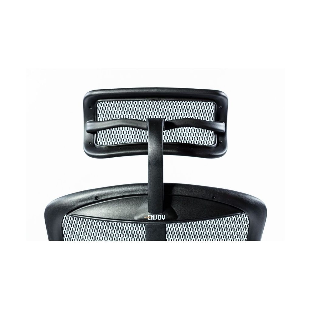 Exkluzívna kancelárska stolička Enjoy 2 s priedušným sedákom, operadlom a opierkou hlavy, synchrónny mechanizmus s nastavením sily protiváhy - ovládanie joystickom, niekoľkonásobná aretácia, nastavenie hĺbky sedáku, výškové nastavenie operadla- up-down, nastavenie záporného uhla operadla, nastavenie uhla a výšky podrúčiek a opierky hlavy, hliníková báza, kolieska s priemerom 60 mm, farba sieťoviny: čierna KM 11, nosnosť 130 kg, záruka 36 mesiacov.