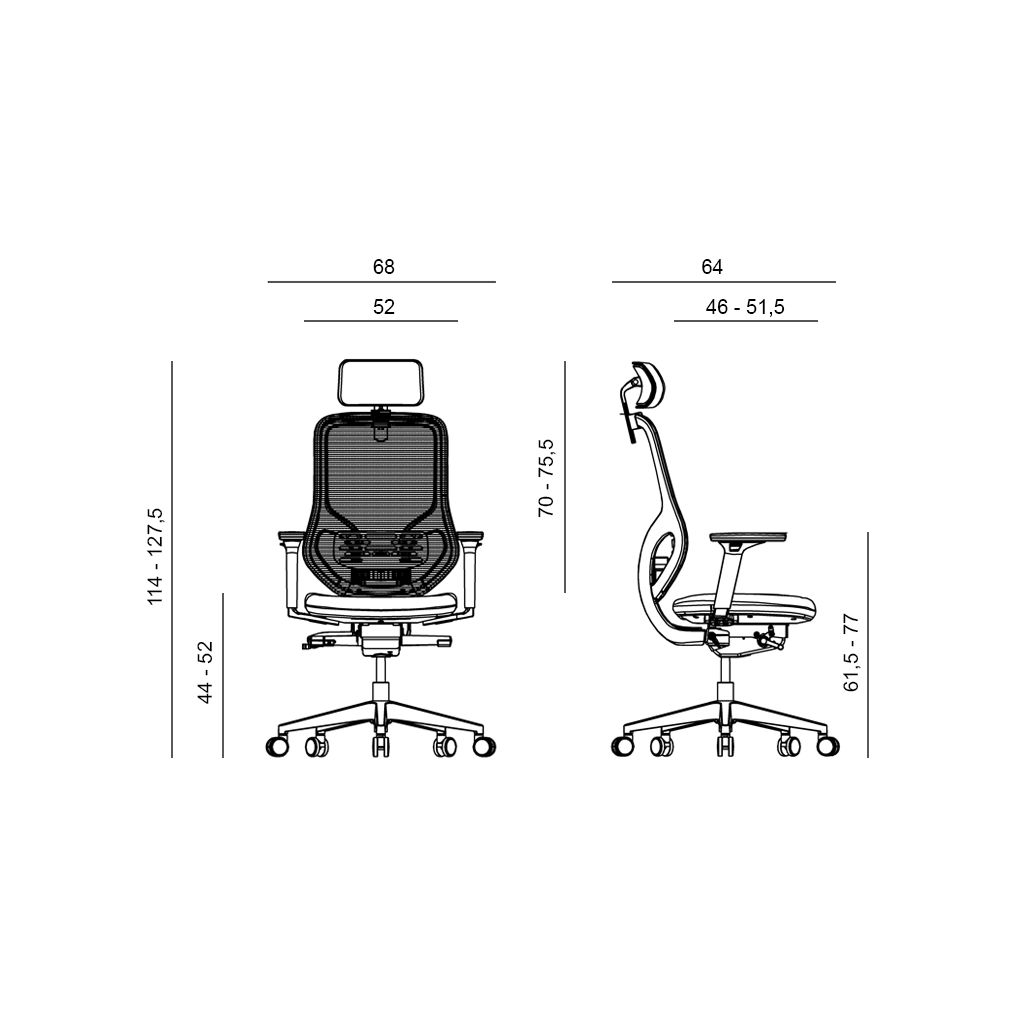 Okrem toho je stolička vybavená nastaviteľnou hĺbkou sedadla, výškovo a uhlovo nastaviteľným podhlavníkom a 2D výškovo a vodorovne nastaviteľnou bedrovou oporou. 3D výškovo, uhlovo a pozdĺžne nastaviteľné podrúčky s mäkkou dotykovou plochou zaisťujú optimálnu podporu pre ruky a zlepšujú celkový komfort.
