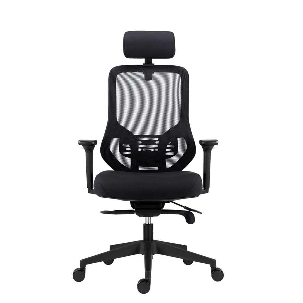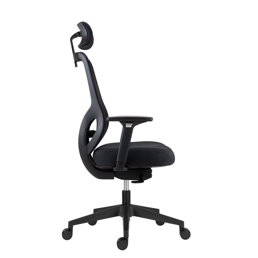 Jedným z hlavných prvkov tejto kancelárskej stoličky je sieťovina na operadle, ktorá zabezpečuje optimálnu ventiláciu a pohodlie počas dlhých pracovných dní. Čalúnený sedák a podhlavník prispievajú k celkovému komfortu a podporujú správne držanie tela.