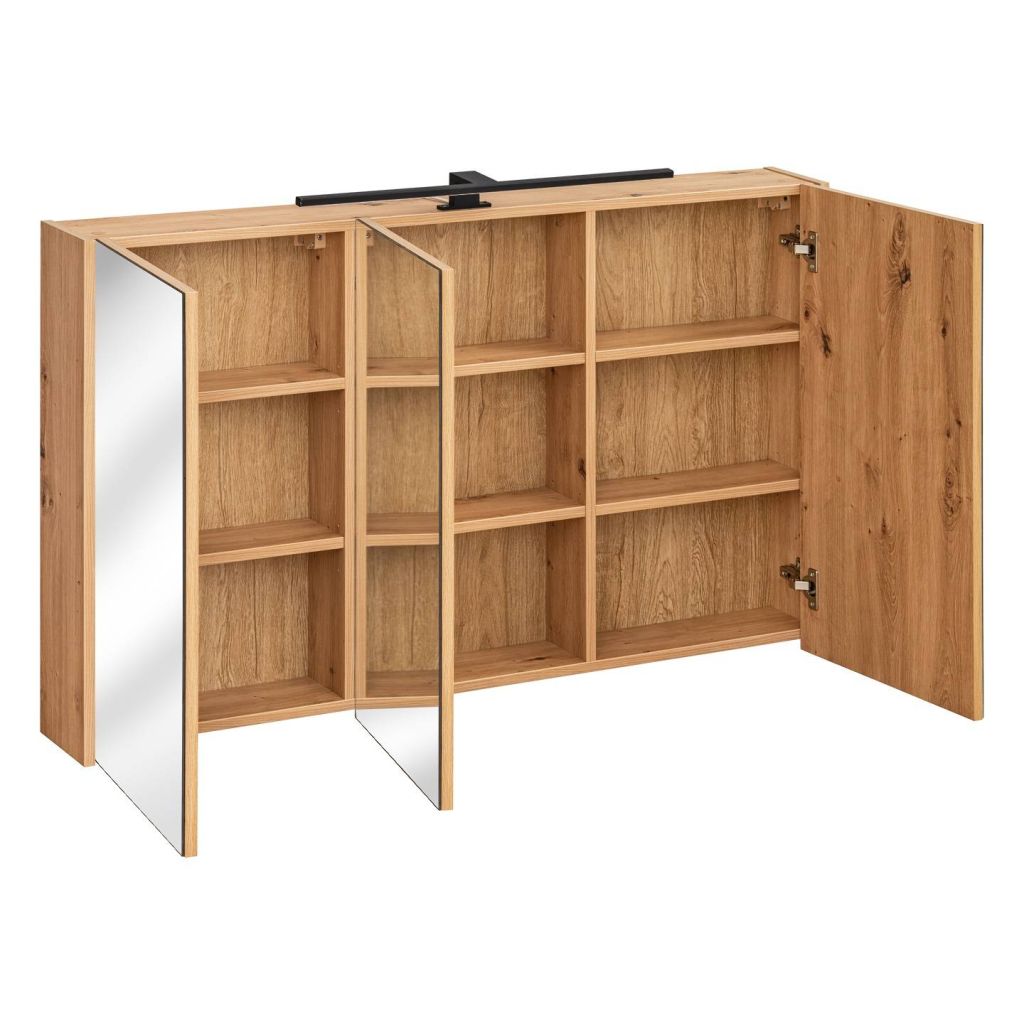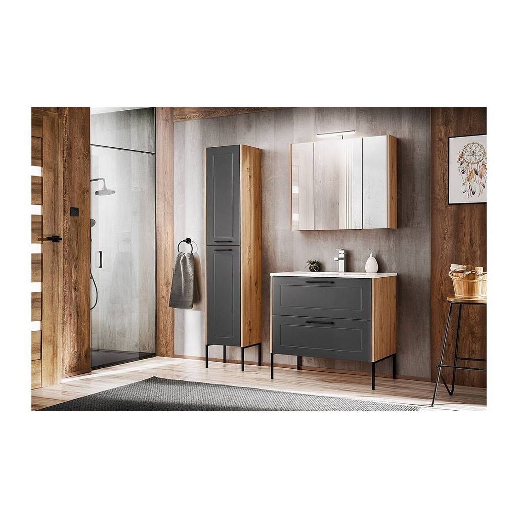 Kúpeľňová skrinka MADERA 843 kombinuje moderný vzhľad s praktickým využitím. Vďaka použitiu odolnej laminovanej dosky a zvolenému dekoru dub artisan pôsobí útulne a elegantne. Zrkadlové dvierka opticky otvárajú priestor a skryté police za nimi umožňujú efektívne uskladnenie kozmetiky a doplnkov. Mechanizmus tichého zatvárania zvyšuje pohodlie pri každodennom používaní. Skrinka je súčasťou kolekcie MADERA GREY, v ktorej si môžeš vyskladať celý štýlový kúpeľňový set.