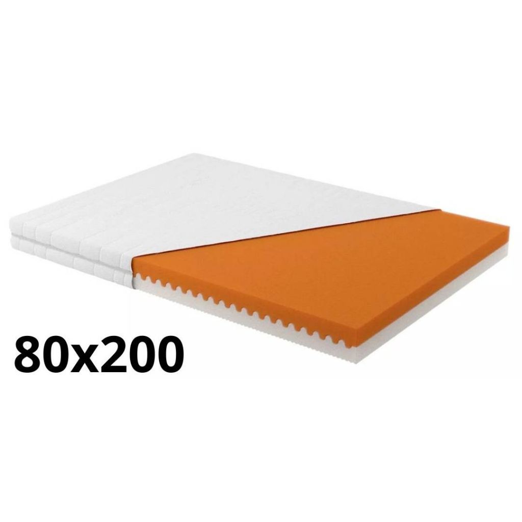 Matrac je vyrábaný v rozmere 80x200 cm, 90x200 cm, 100x200 cm, 110x200cm, 120x200 cm, 140x200 cm."}">Matrac z kvalitnej peny je vďaka špeciálnemu zámkovému systému vyrobený bez použitia lepidiel. Jadro je zložené z polyuretánových dosiek o nižšej ( žltá farba peny ) a vyššej ( ružová farba peny ) tuhosti, čo umožňuje výber mäkšej a tvrdšej strany matraca. Komfort ložnej polochy u mäkšej strany je zvýšený tvarovaným prierezom, ktorý zabezpečuje lepšie odvetrávanie povrchu. Farebnosť pien: farebné zobrazenie pien na webe sa môže líšiť s reálnym stavom. Farebné vyhotovenie peny je iba optickou záležitosťou, ktorá neovplyvňuje vlastnosti matraca