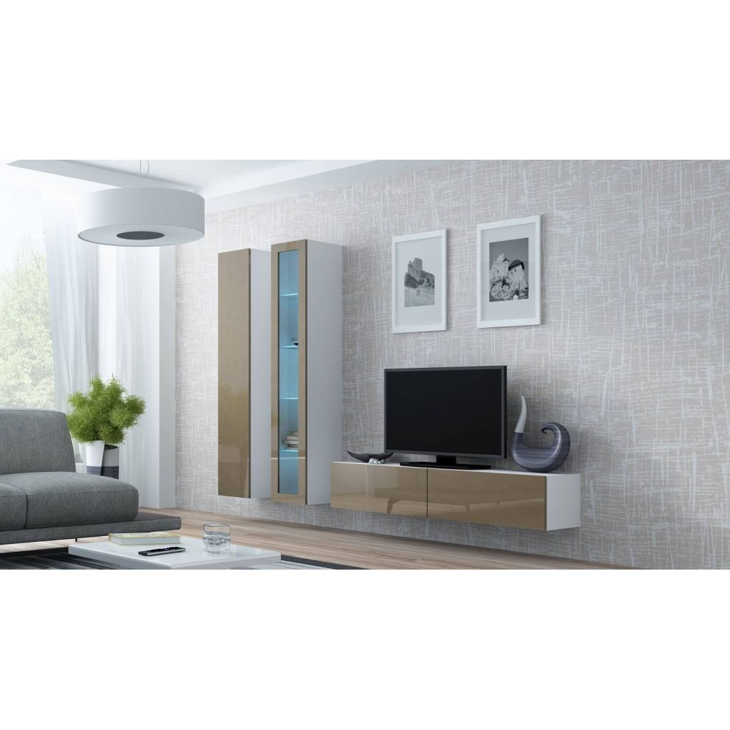 Systém závesných prvkov kolekcie Vigo je vhodný na vytvorenie harmonicky usporiadanej obývacej izby. Všetky prvky sa vyznačujú lesklým alebo matným prevedením predných plôch (matné prevedenie platí pre dekor dub wotan, ostané dekory sú lesklé) a vždy matným prevedením korpusu. Obývaciu izbu si z ponúkaných prvkov môžete vyskladať akokoľvek - zostavením skriniek môžete vytvoriť akýkoľvek variabilný tvar obývacej izby, ktorá bude vždy pôsobiť jednoducho a zároveň moderne. Závesné horné skrinky môžete uložiť zvislo, alebo vodorovne. Sklenené vitríny alebo televízne stolíky môžete dokúpením led osvetlenia nádherne presvetliť.