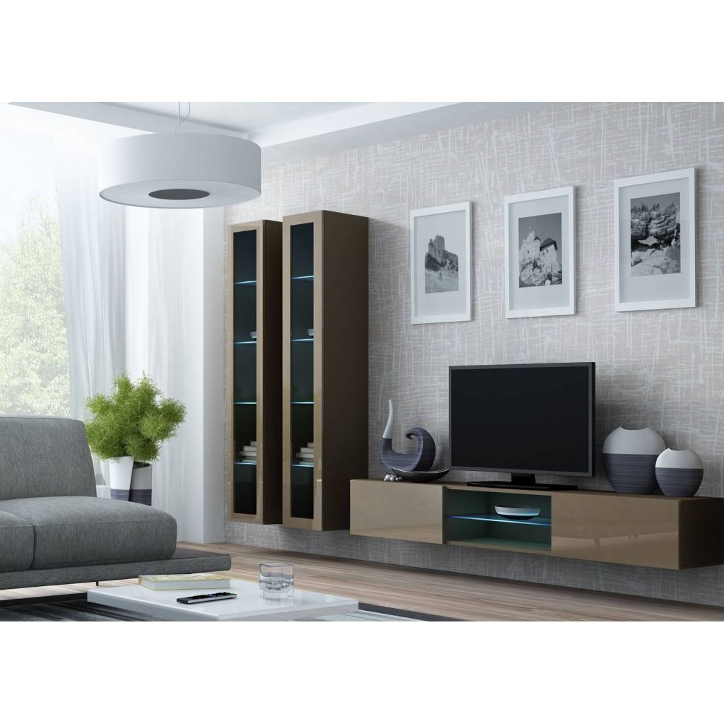Systém závesných prvkov kolekcie Vigo je vhodný na vytvorenie harmonicky usporiadanej obývacej izby. Všetky prvky sa vyznačujú lesklým alebo matným prevedením predných plôch (matné prevedenie platí pre dekor dub wotan, ostané dekory sú lesklé) a vždy matným prevedením korpusu. Obývaciu izbu si z ponúkaných prvkov môžete vyskladať akokoľvek - zostavením skriniek môžete vytvoriť akýkoľvek variabilný tvar obývacej izby, ktorá bude vždy pôsobiť jednoducho a zároveň moderne. Závesné horné skrinky môžete uložiť zvislo, alebo vodorovne. Sklenené vitríny alebo televízne stolíky môžete dokúpením led osvetlenia nádherne presvetliť.