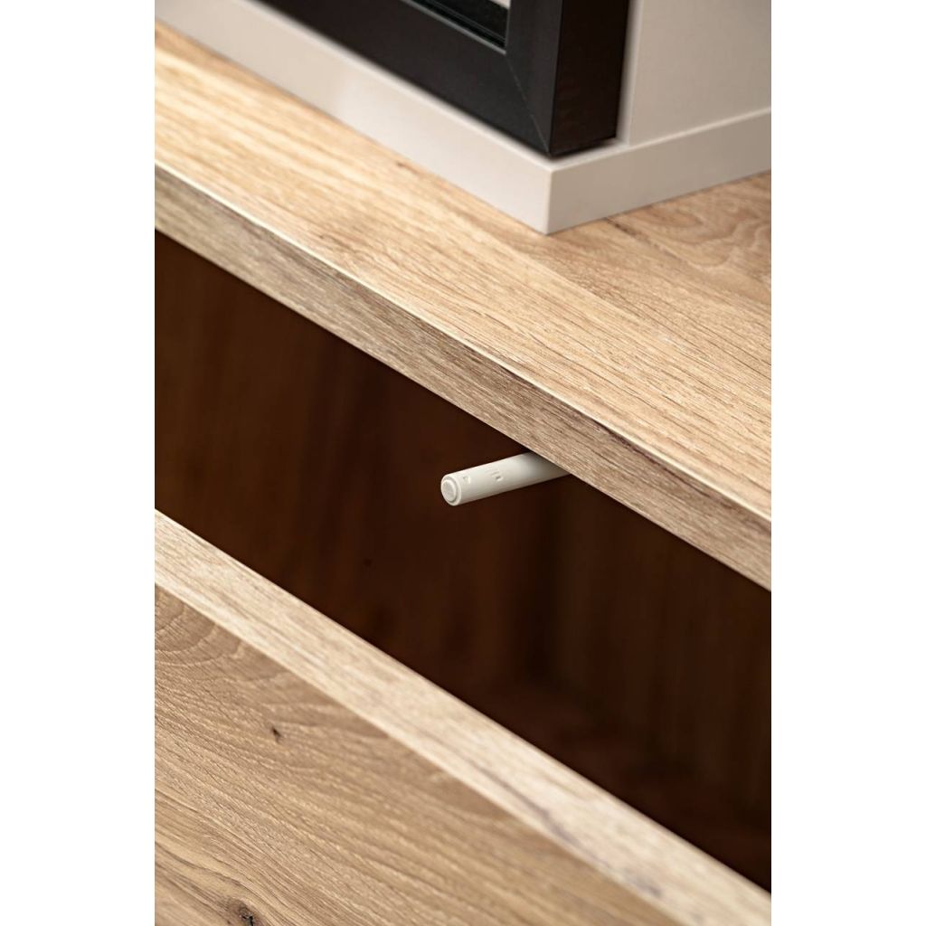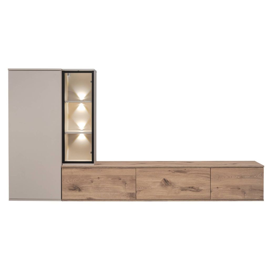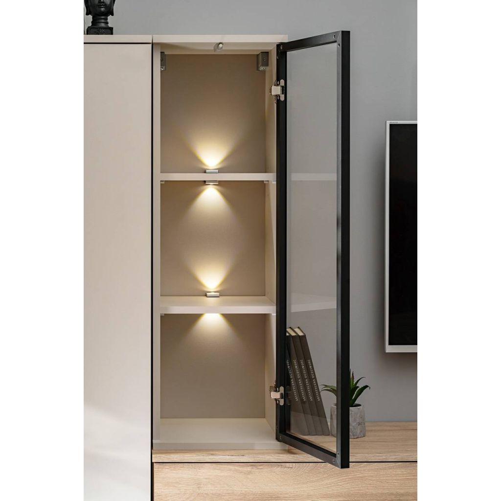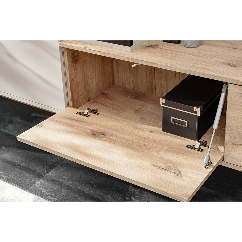 Obývacia stena CLARE sa vyznačuje svojím čistým a jednoduchým vzhľadom. Vďaka svojím menším rozmerom a minimalistickému štýlu je vhodná aj do menších obývačiek. Farebná kombinácia svetlého dubu a moderného kašmíru Vám garantuje čistotu a harmóniu priestoru.
