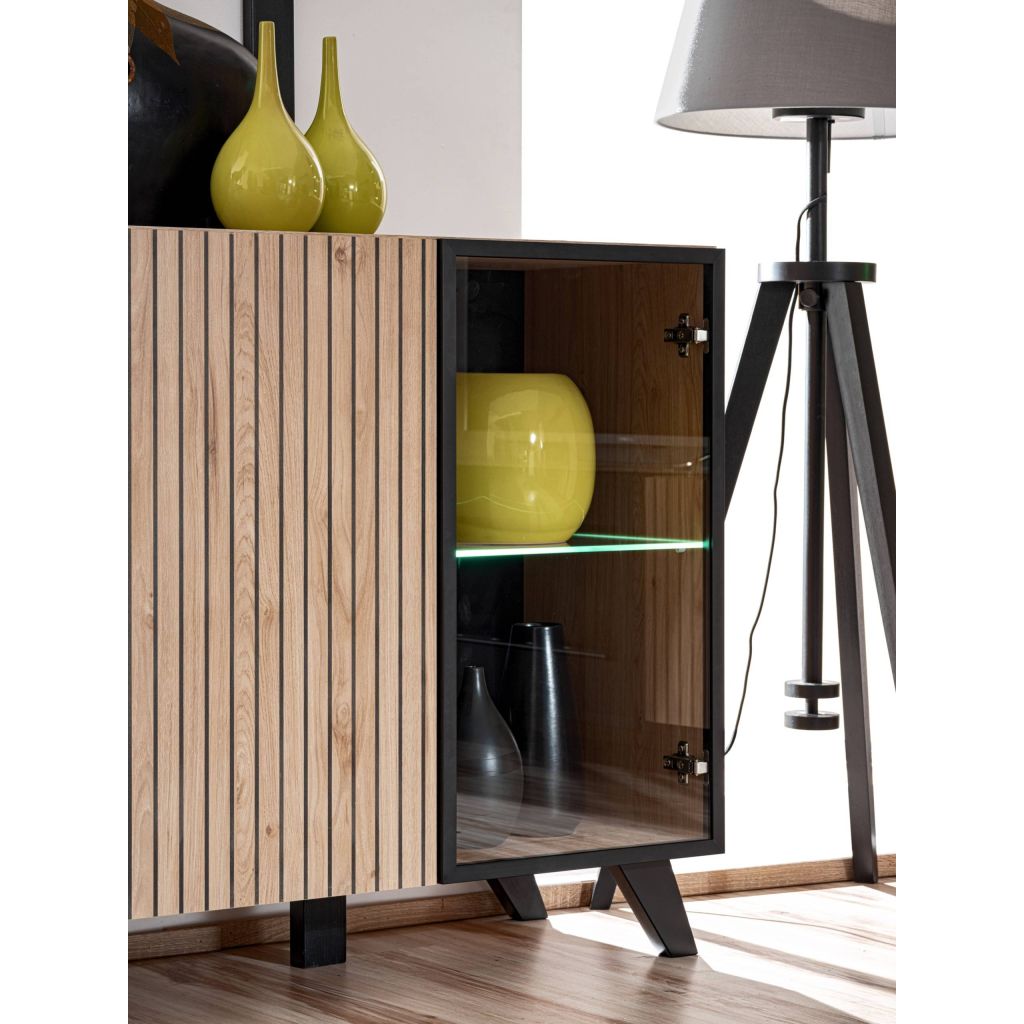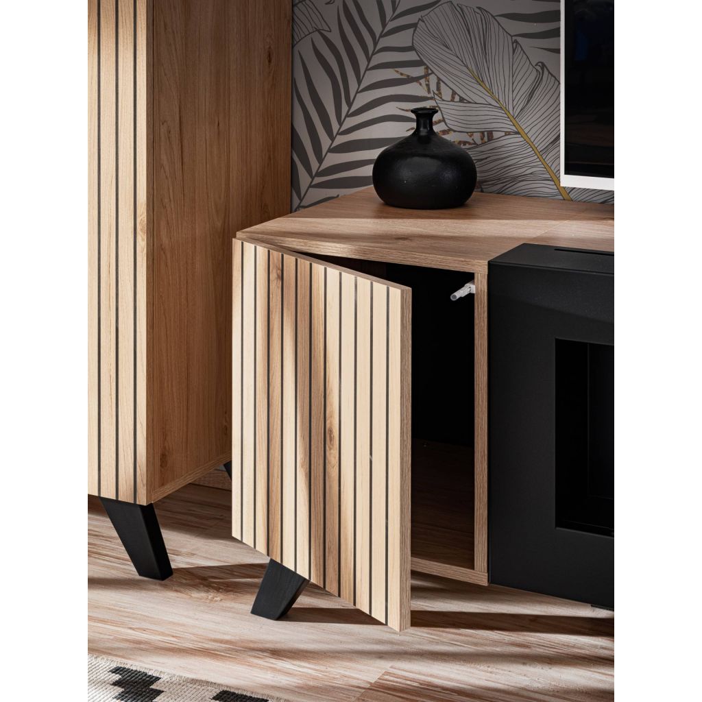 Obývacia stena LIAM je perfektným riešením pre obývačky ktoré potrebujú dostatok úložného priestoru. Sektorové prvky je možné univerzálne vyskladať a pokryť tak priestor ktorý potrebujete mať založený nábytkom. Moderné lamelové prevedenie v kombinácii s čiernou je perfektným riešením pre moderné obývačky a zaručí, že nábytok vo Vašej obývačke bude štýlový a moderný.