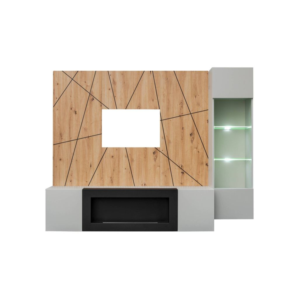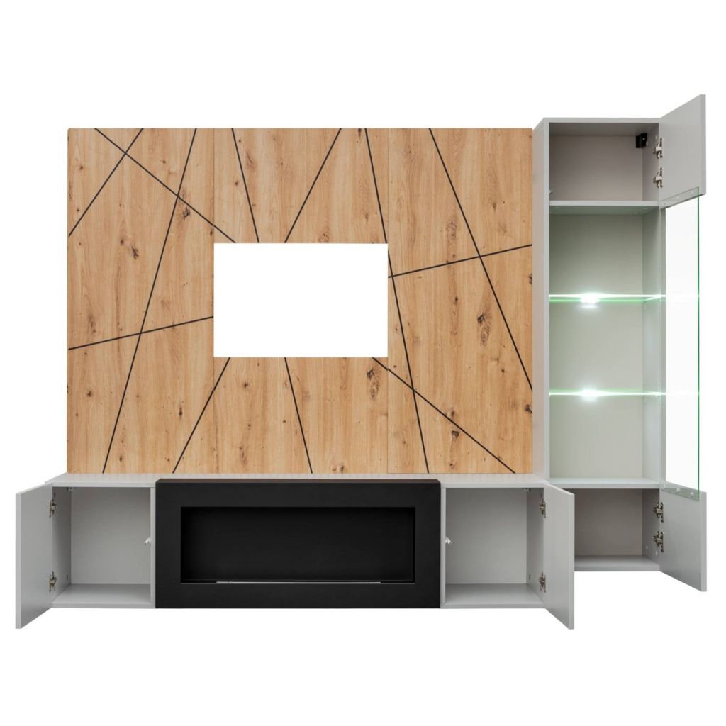 ASM- Obývacia stena XARI G-K s TV stolíkom s biokrbom, vitrínou a panelom