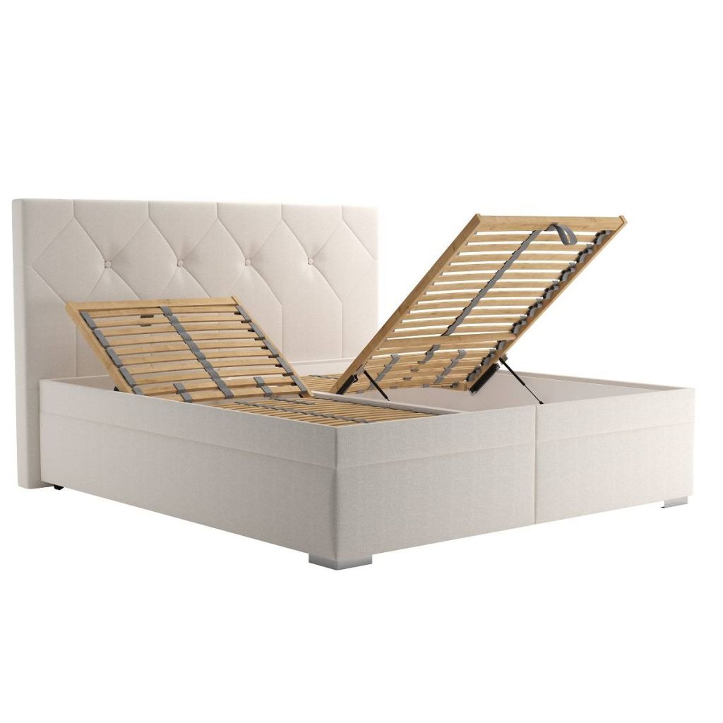 Pod veľkorysou spacou plochou 180x200 cm sa nachádza neoceniteľný úložný priestor (ÚP), ideálny na odkladanie lôžkovín, sezónneho oblečenia či iných potrieb. Veľkou výhodou je, že posteľ je dodávaná spolu s kvalitným polohovateľným lamelovým roštom. Tento rošt zabezpečuje nielen správne odvetrávanie pre váš budúci matrac a optimálnu podporu tela, ale zároveň umožňuje jednoduchý prístup k celému úložnému priestoru pod ním vďaka mechanizmu vyklápania.