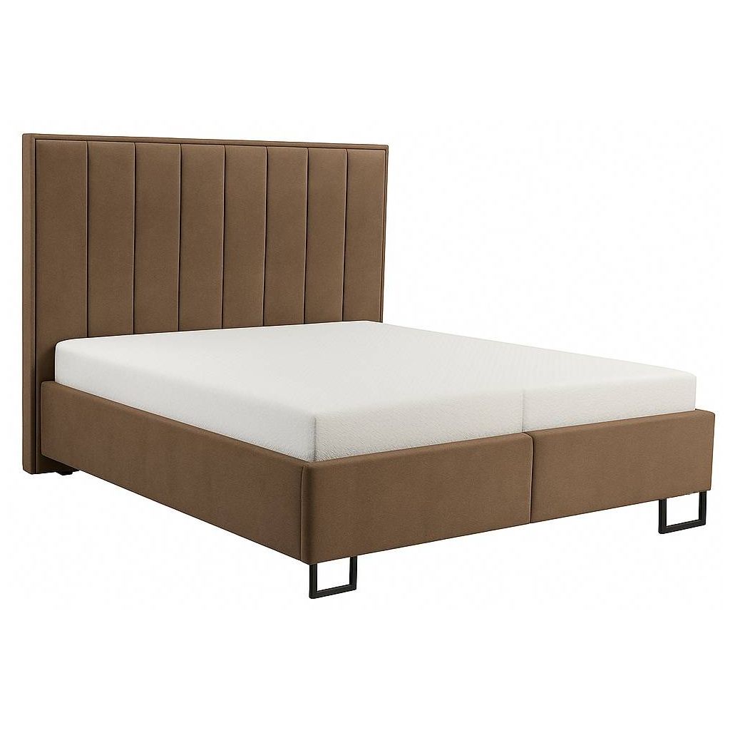 - Čalúnený materiál: Príjemná látka v hnedej farbe dodáva posteli luxusný vzhľad a je príjemná na dotyk.