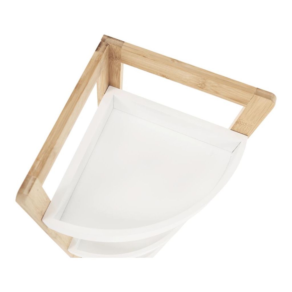 Rohový regál biela/prírodný bambus, FONG, Biela