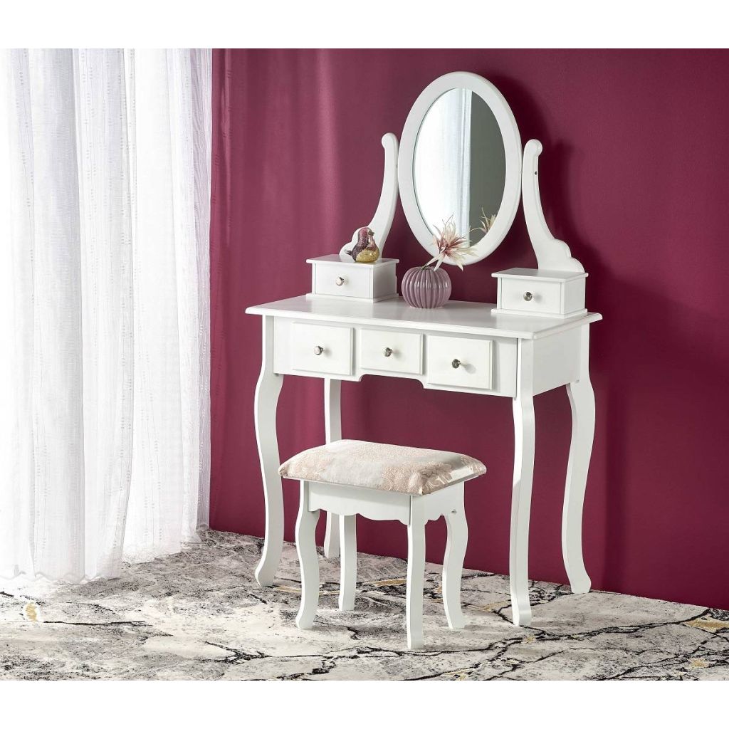 Tento nábytok poteší každú ženu, ktorá túži po vlastnom kozmetickom kútiku. Premyslená konštrukcia ponúka niekoľko priestranných zásuviek, vďaka ktorým je dostatok miesta na uloženie kozmetiky, šperkov a ďalších drobností každodennej potreby. Veľké zrkadlo je ďalším výrazným plusom, ktoré ocenia aj tí najnáročnejší používatelia. Elegantná farebná kombinácia v matnej bielej podčiarkuje krásu interiéru a púta pozornosť každého návštevníka. Toaletný stolík SARA si získal priazeň ľudí, ktorí oceňujú funkčnosť, pohodlie a nadčasový dizajn.